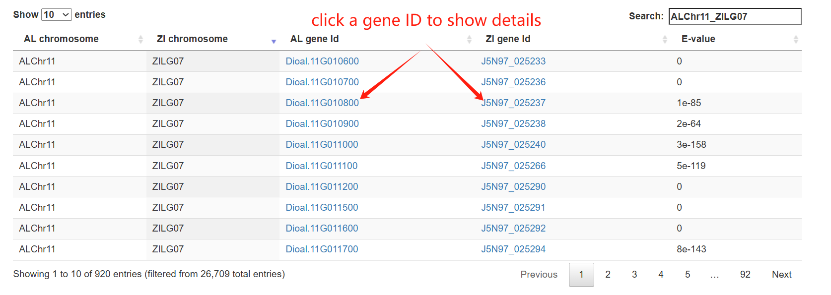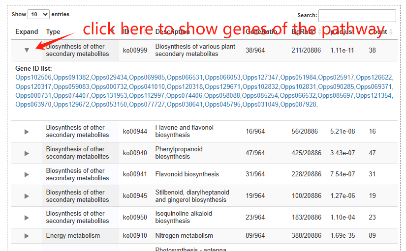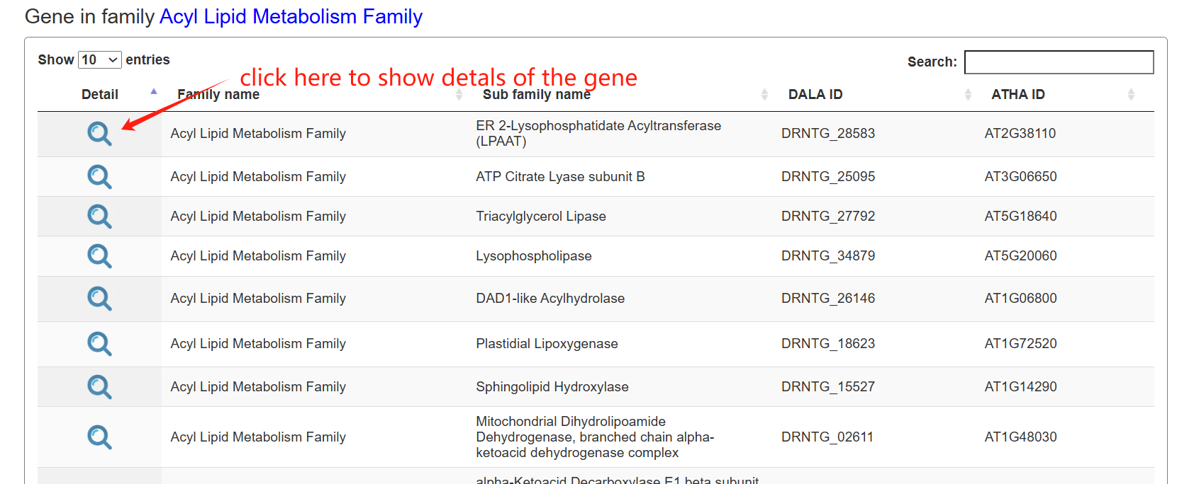 Through the genes menu, users can browse genes by pathway, family and genome synteny.