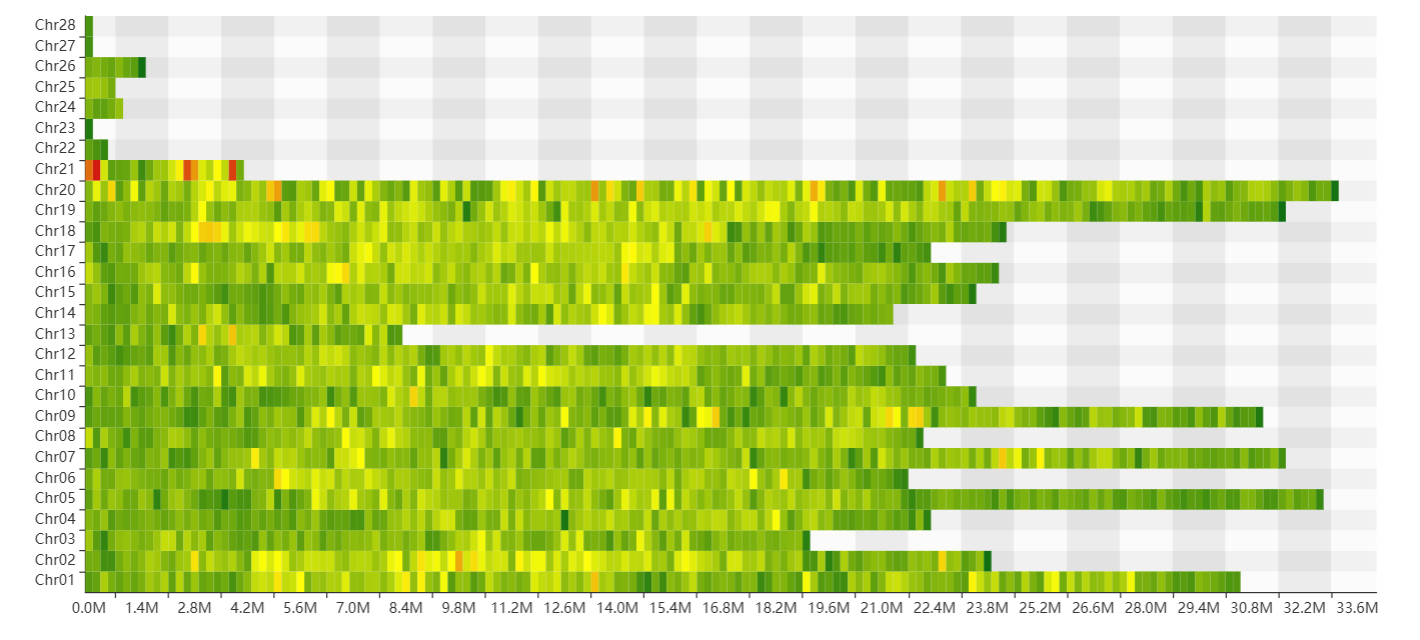 The second section features a heatmap that visualizes variant density across all chromosomes. Detailed variant counts are revealed by hovering over each bin.